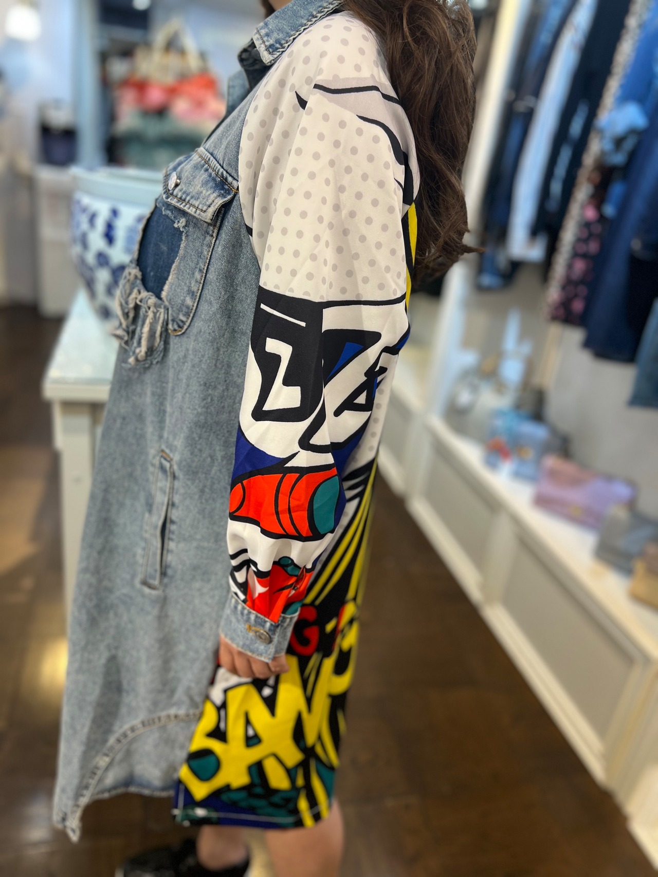 これぞインポート買い付け!というインパクト大大大!!なアメコミプリントのデニムワンピース