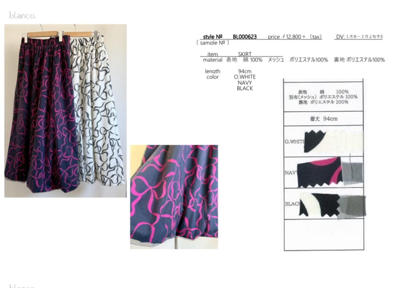 blanco.BL000623 リボン柄チュール付バルーンスカート